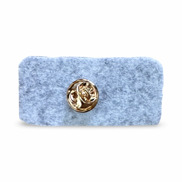 縦2.5センチ、横5センチでバッジ部分は蝶タッグ式