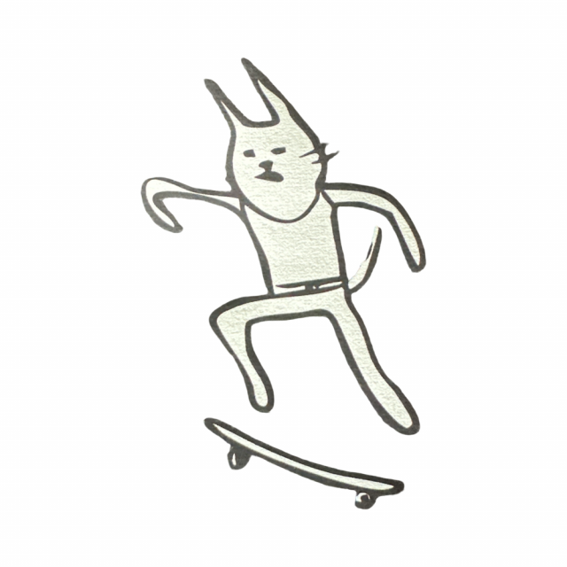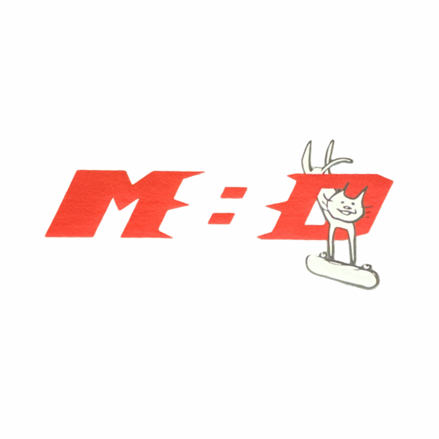 胸のm80ロゴににハンドスタンド猫が絡んだかわいいL/S Tシャツ